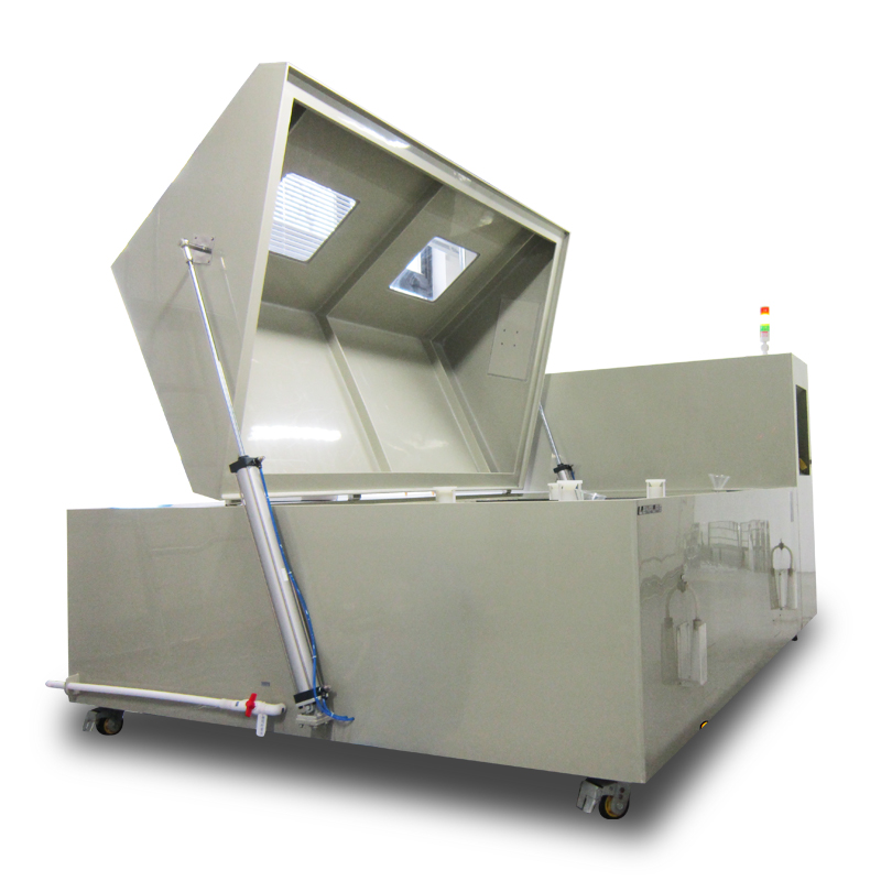 機車防水試驗室適用于檢測戶外機動列車的防水密封性,通過防水試驗室,把淋雨檢測的條件與外面自然狀態達到相似,來確認機動列車的